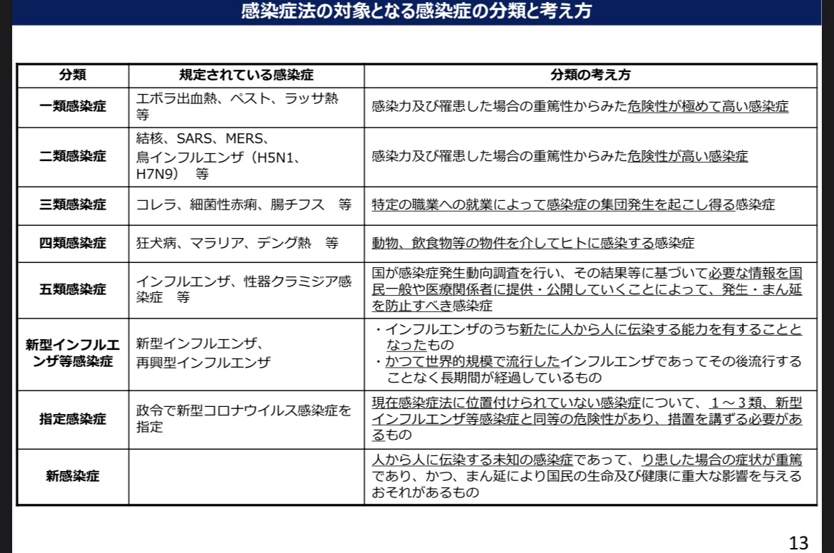 (新型コロナウイルス感染症に関する)感染症の分類について